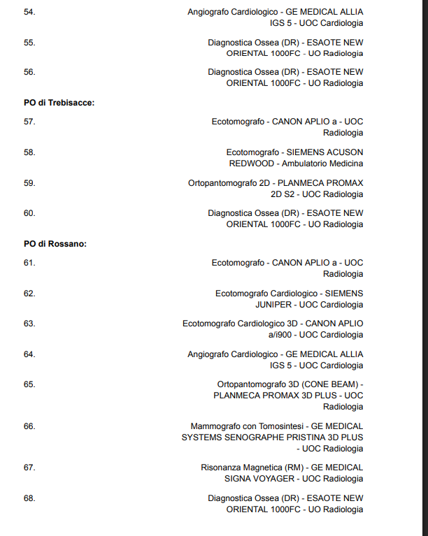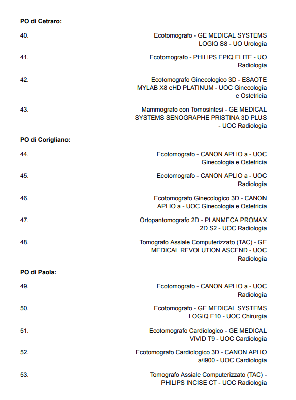 Graziano: «acquistati 68 nuovi macchinari negli ospedali di Cosenza e provincia». Ecco quali e dove