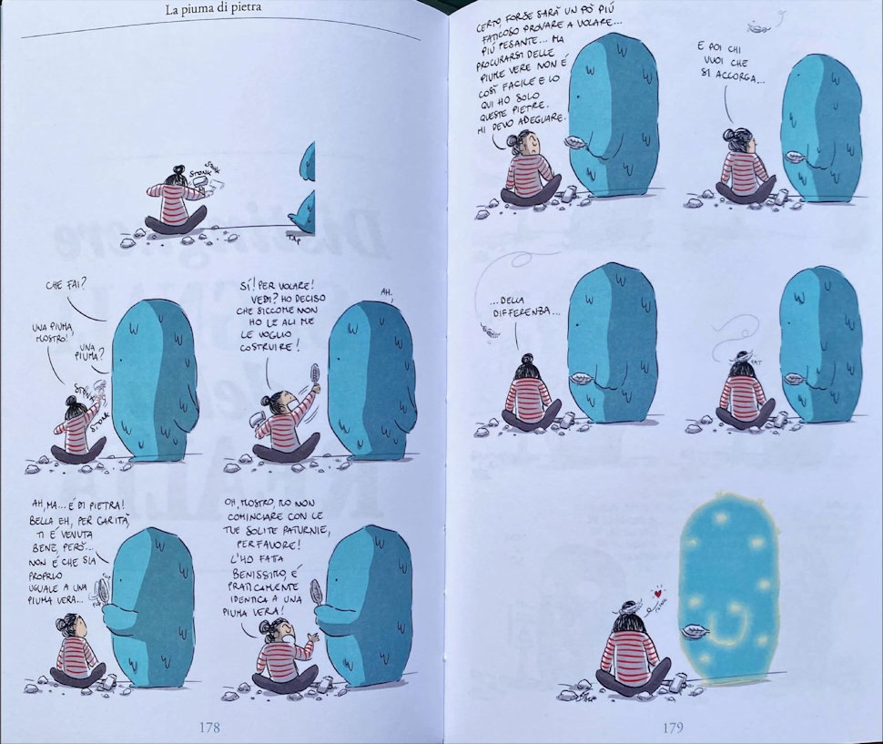 Questo secondo volume, che fa seguito a “Io e (il) Mostro – Fabbri 2021”, si fa strada nel cuore del lettore con una scelta narrativa delicata e coraggiosa, instaurare un dialogo profondo e struggente tra una ragazza e il “mostro” che vive in lei.