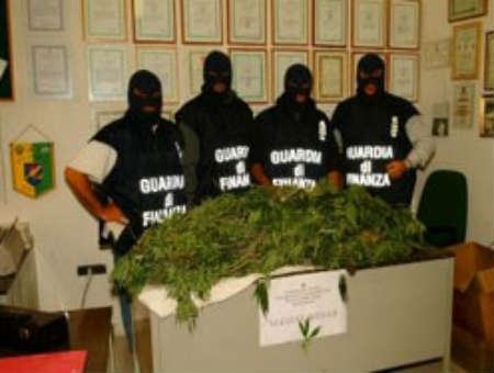 hanno sequestrato una piantagione composta da 380 piante di canapa indiana e sequestrato un etto di cocaina. Dopo una serie di appostamenti e perlustrazioni protratti per alcuni giorni, la coltivazione e’ stata individuata in un’area boschiva nelle vicinanze del quartiere cittadino di “Farina”. La piantagione, estesa per circa 200 metri quadrati, si disponeva su sette distinti filari, ciascuno dei quali composto da piu’ piante di altezza variabile tra 1 e 3 metri. Particolarmente ingegnoso il sistema d’irrigazione adottato, costituito da tubature interrate che si diramavano in piu’ direzioni, allo scopo di asservire i singoli filari della piantagione. In questo modo era possibile attivare l’impianto a distanza, evitando movimenti sospetti sul terreno, che e’ risultato di proprieta’ di un Ente di diritto pubblico economico. Un ulteriore importante risultato di servizio e’ stato messo a segno dal Nucleo Mobile e dai “baschi verdi” pitagorici durante un servizio su strada effettuato nei pressi del bivio tra la strada statale 106 e l’arteria provinciale che conduce alla frazione di Papanice. I finanzieri hanno controllato un automezzo proveniente da Papanice, con a bordo due coniugi residenti nel popolare quartiere di via Acquabona, unitamente ai due figli piu’ piccoli della coppia. Alla vista dei militari, la signora si e’ disfatta, gettandolo dal finestrino, di un involucro di cellophane che conteneva un etto di cocaina. Su disposizione dell’Autorita’ Giudiziaria, si e’ proceduto all’arresto della donna, posta in custodia domiciliare in attesa del giudizio direttissimo, mentre il marito, conducente del veicolo, e’ stato deferito in stato di liberta’. Entrambi i coniugi sono gravati da specifici precedenti di polizia per reati inerenti gli stupefacenti.