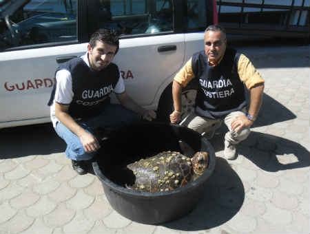 Al largo della costa di Cariati, a poca distanza dall’imboccatura del porto, un diportista ha notato una tartaruga “Caretta caretta” in difficoltà a pelo dell’acqua e che non riusciva più a immergersi in mare e quindi rischiava la vita. Subito ha provveduto ad informare la Capitaneria di porto di Corigliano Calabro dove i militari, agli ordini del Comandante Capitano di Fregata Antonio D’Amore, hanno iniziato le attività finalizzate al recupero del simpatico animale in tutta sicurezza e tranquillità per la stessa tartaruga, provveduto al suo trasferimento da Cariati ed informato i veterinari del centro di recupero del WWF di Policoro che, con una staffetta dalla Basilicata, hanno preso in consegna il rettile. Il centro del WWF è autorizzato dal Ministero dell’ambiente e della tutela del territorio e del mare nell’ambito di un progetto di monitoraggio delle tartarughe marine per le province di Matera, Cosenza e Taranto. La tartaruga, con il carapace lungo 85 centimetri e largo 50, del peso di circa 35 chili, ha quindi potuto ricevere le prime cure in attesa di ricovero presso la clinica veterinaria dell’Università di Bari. Le tartarughe, come tutti i rettili, hanno sangue freddo che le porta a prediligere le acque temperate. Respirano aria, essendo dotate di polmoni, ma sono in grado di fare apnee lunghissime; trascorrono la maggior parte della loro vita in mare profondo, tornando di tanto in tanto in superficie per respirare. Al termine delle cure, che le consentiranno di riprendere le normali funzioni vitali, la Caretta caretta recuperata a Cariati potrà quindi riprendere il mare e tuffarsi nuovamente nelle acque blu dello Jonio cosentino.