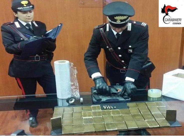 COSENZA – Circa 5 kg di hashish suddivisi in 45 panetti da 100 grammi ciascuno, una beretta 9×21 matricola abrasa con due serbatoi con 14 colpi totali. Questo ciò che è stato rinvenuto questa mattina nell’abitazione di Mario Rende, 63enne incensurato di Cosenza, per il quale sono scattate le manette.