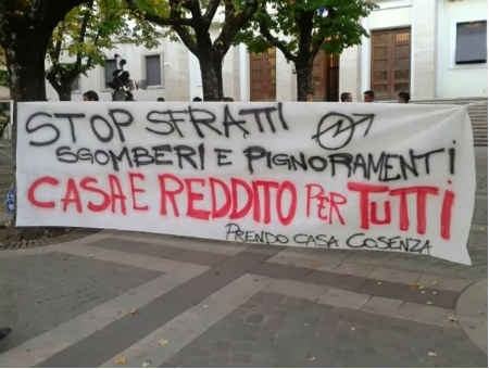 “Nell’ultimo decennio, – si legge in una nota divulgata dal CPOA Rialzo – a Cosenza, è esplosa una vera e propria crisi abitativa, persino più grave che in altre città meridionali, perché si è realizzata mentre andava avanti una cementificazione del tutto irrazionale. A causa della crescente (e ignorata) disoccupazione e di prezzi al di fuori di ogni portata, il dramma di non avere una casa è diventato il vissuto comune di migliaia di persone. Non avere dove stare è diventato un problema, senza distinzioni di sesso, religione, etnia e provenienza economica e sociale. A Cosenza i movimenti che si occupano del diritto alla casa hanno creato riconoscibili situazioni di condivisione, di riappropriazione di spazio pubblico e di riaffermazione della dignità  di ciascuno. Andando contro tutte le logiche profittatorie e parassitarie. Le stesse che hanno fatto moltiplicare, nell’area urbana, gli immobili colpevolmente inutilizzati e abbandonati, anche quando di proprietà pubblica e di grandi dimensioni. Mentre si moltiplicano le iniziative di lotta, che focalizzano temi reali come la casa, l’ambiente e il reddito, viene fomentata dalla politica la pesante criminalizzazione giudiziaria di chi si impegna costantemente per i diritti sociali di tutti, soprattutto di quelli che ne sono colpevolmente e violentemente privati. L’inasprirsi delle sanzioni e il rifiuto di dialogare con i movimenti, come quelli degli inquilini, dei migranti e dei precari, non fanno altro che peggiorare le cose”.