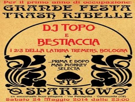 A partire dalle 23:00 direttamente da Bologna, per amore della trash, il mitico Dj Topo e Soroton (a.k.a. Bestiaccia) from Latrina Tremense accompagnati dalle selezioni musicali di Mad Monkey faranno ridere e ballare tutti fino a tarda notte. A chi durante la serata avrà il travestimento più trash, S.P.Arrow regalerà un giro di bevuta al bar brindando ai 365 giorni di resistenza dello spazio sociale rendese. Un anno di lotta che i militanti del collettivo dicono aver trascorso contrastando ‘fascismo e repressione. Contro le logiche sistemiche e la falsa aggregazione di locali e localini. Senza soldi nelle tasche, ma con tutta la rabbia e l’amore che abbiamo dentro e che nessuno potrà mai spegnere”. Il ricavato della serata sarà interamente devoluto per l’organizzazione dei dieci giorni di BHAP (Beat, Hippy, Autonomi, Punk) la mostra su controculture e movimenti di cui si riporta di seguito il programma delle iniziative previste dal 30 Maggio all’8 Giugno.