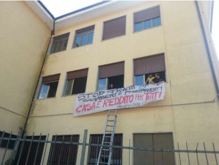 “Dopo l’operazione militare, guidata dalla digos e operata dai reparti speciali di polizia e carabinieri, che 10 giorni fa ha messo sulla strada 50 persone, – scrive in una nota il comitato Prendocasa – tra cui decine di bambini, ritorniamo ad occupare uno dei tanti immobili pubblici chiusi che in questa città, come nel resto del paese, sono destinati a rimanere chiusi o ad essere cartolarizzati. Il 15 maggio procura e questura hanno voluto dare una prova di forza contro le occupazioni ammantandosi dietro la retorica del ripristino della legalità e il suggello della proprietà privata, cercando di scoraggiare la determinazione di chi ha deciso di non delegare più la propria esistenza alla politica ed alle logiche clientelari, ma di riprendersi tutto quello che gli spetta a partire dal diritto alla casa. Nelle nostre orecchie ancora rimbomba l’eco delle urla di paura che si levavano ad ogni colpo di mazza contro il portone di via Minzoni, sotto gli occhi ci sono ancora le immagini di un palazzo che fino a poche ore prime era stato“casa” e che scendendo dal quel tetto trovammo completamente devastato: porte sfondate, armadi fatti a pezzi con la motosega, ogni cosa per aria. Una violenza spropositata per dire a poche decine di persone che le “pie” sorelle rivolevano la loro proprietà a qualsiasi costo e che il piano casa Renzi stava diventando legge.