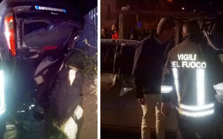 Sbanda con l’auto e si schianta contro un muro finendo sopra un’altra vettura, 4 giovani feriti
