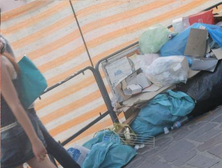 È un pomeriggio tranquillo, l’aria non è neanche troppo opprimente, ma le persone per le vie del corso diminuiscono proporzionalmente all’avanzare dell’estate. La maggior parte dei negozi è chiusa, fatta eccezione per bar, rosticceria, tabacchino e parrucchiere. Sono chiusi i negozi di telefonia, l’ottico, la pasticceria e le edicole. Alcuni mucchi di spazzatura spuntano in diversi punti più o meno invadenti ai lati dei marciapiedi, oltre i quali ci sono le recinzioni del cantiere. Svieta, fa la badante, il portone di casa sua è proprio accanto a uno di questi cumuli di spazzatura. «C’è una puzza terribile – racconta la donna – e questa non è spazzatura del nostro palazzo, qui non ci vive quasi nessuno; chi viene a buttare qui l’immondizia abita da qualche altra parte», ed è evidente che non viene raccolta da qualche giorno. Un’altra donna, forse sua collega, conferma la testimonianza dell’amica «dobbiamo andare al comune per chiedere di risolvere la situazione?». Il problema dei rifiuti a Cosenza non fa che peggiorare con l’arrivo del caldo. La puzza di spazzatura ammassata sotto il sole si specchia così nelle voci di scontento di chi è costretto a convivere tra polveri e miasmi.