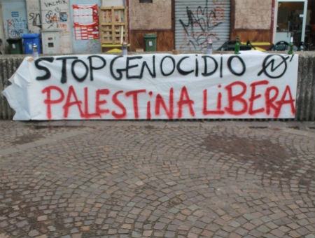 Questo lo striscione esposto oggi in Piazza dell’Unità d’Italia a Commenda, insieme alla bandiera della Palestina. “Un modo per mostrare la nostra solidarietà al popolo palestinese, vittima da giorni di attacchi aerei e via terra da parte dell’esercito israeliano”, è uno dei commenti lanciati al megafono da un ragazzo presente al sit-in. Decine di partecipanti, un volantino informativo e qualche intervento sulle condizioni dei palestinesi in questi giorni “Questa non è una guerra, – afferma un attivista – perché non ci sono due eserciti, oggi in Palestina è in atto un genocidio; hanno sganciato bombe su due ospedali, hanno causato la morte di tanti civili”. Poi qualche numero sulle vittime: circa 180 morti e oltre 1000 feriti. Questi, ad ora, i dati raccolti dal web e dalla stampa. Rende non è stata l’unica città in cui è stata espressa solidarietà al popolo palestinese; con bandiere, striscioni e manifestazioni di sorta, sia nei giorni scorsi che nei prossimi infatti, in varie città d’Italia e d’Europa ci saranno singoli e gruppi che scenderanno per le strade ad esprimere la loro vicinanza al popolo palestinese.