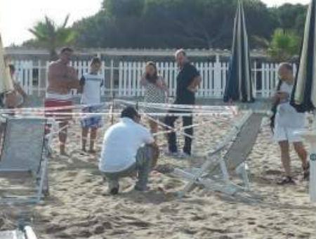 Tartaruga caretta caretta depone le uova in mezzo agli ombrelloni