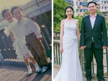 Ecco invece un esempio di ‘eccezione’ che arriva dalla Cina. Wang Zi-heng, l’aveva promesso e l’ha fatto. E’ riuscito a sposare quella bambina che sentiva di amare già dall’età di 6 anni. Aveva sempre creduto che quella fosse la donna della sua vita. Wang aveva conosciuto quella bambina, quando aveva sei anni, ed anche se era ancora molto giovane, capì subito che era destinato a sposarla. Addirittura disse alla madre: “Io sposerò sua figlia un giorno”. Ebbene dopo 18 anni da quel fatidico incontro, i due giovani hanno detto ‘si’. I due bambini andavano alla stessa scuola materna, giocavano insieme e si baciavano anche di nascosto nonostante la giovane età. I loro genitori non hanno ostacolato quell’amore innocente e addirittura un giorno li vestirono da sposi e gli scattarono una foto su un ponte in città. Wang però, poco tempo dopo dovette cambiare quartiere e si separò dalla sua anima gemella, ma nonostante la lontananza non ha mai smesso di pensare a lei. Cresciuto infatti, iniziò a cercarla ma anche lei, aveva cambiato quartiere e il povero Wang non sapeva neanche il suo nome completo (avendo usato, per chiamarle, sempre il soprannome Xixi). Sono stati i genitori del giovane a dargli una mano. Dopo aver incontrato un parente della bimba, ormai diventata una ragazza, sono riusciti a risalire all’indirizzo e al suo nome. I due si sono incontrati ed hanno iniziato ad uscire e poi.. hanno deciso di sposarsi. Dopo il matrimonio tornarono su quello stesso ponte di 18 anni addietro, per immortalare il loro sogno realizzato.