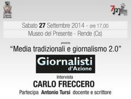 Stiamo parlando di ‘Giornalisti d’Azione’ che ha l’obiettivo di mettere insieme i giornalisti calabresi per far si che collaborino, discutano e condividano istanze, problematiche e progetti. Il battesimo ufficiale di Giornalisti d’Azione avverrà sabato prossimo 27 settembre, alle ore 17.00 nel corso di un incontro sul tema “Media tradizionali e giornalismo 2.0” che si terrà al Museo del Presente di Rende, nell’ambito dell’edizione 2014 del Settembre Rendese. Per l’occasione sarà presente un ospite d’eccezione ovvero Carlo Freccero (già direttore di Rai2, fondatore e direttore di RAI4, presidente di raiSat, rifondatore di France2, docente universitario e scrittore, uno dei massimi esperti europei di Comunicazione e, in particolare , di televisione). All’incontro partecieperà anche Antonio Tursi, docente e scrittore, esperto in giornalismo e nuovi media. Ad intervistare Freccero, saranno Salvatore Audia, direttore responsabile di Esperia Tv, Paolo Giura, direttore responsabile di Calabria Tv, Livia Blasi, caposervizio di Tgr Calabria, Sergio Tursi Prato direttore responsabile di Telitalia, e il giornalista Mario Turista Prato. L’evento è realizzato anche con la collaborazione di Telespazio Tv e Business Channel. E sarà trasmesso in diretta streaming grazie alla società Component Produzioni Tv Lamezia Terme. “Giornalisti d’Azione”, ha spiegato proprio uno dei promotori, ovvero Mario Tursi Prato, nasce anche con l’intento di raccogliere le istanze dei giornalisti, di farli discutere dei loro problemi per cercare insieme delle soluzioni demandando poi tutto agli organi istituzionali competenti. Si propone inoltre, di portare avanti alcune campagne come ad esempio, dare una sorta di dignità al lavoro del giornalista soprattutto in Calabria dove si vivono situazioni un po’ anomale. Il giornalista spesso viene considerato un professionista di serie B; Un giornalista ha una sua professionalità, delle competenze specifiche, un ruolo che non può essere ricoperto da chiunque. Inoltre in Calabria la situazione non è rosea per il mondo del giornalismo, così come in tutta Italia per quanto riguarda il mondo dell’editoria: c’è molto lavoro nero, molto sfruttamento e abusivismo. Di questo e di altro si occuperà l’associazione Giornalisti d’Azione.