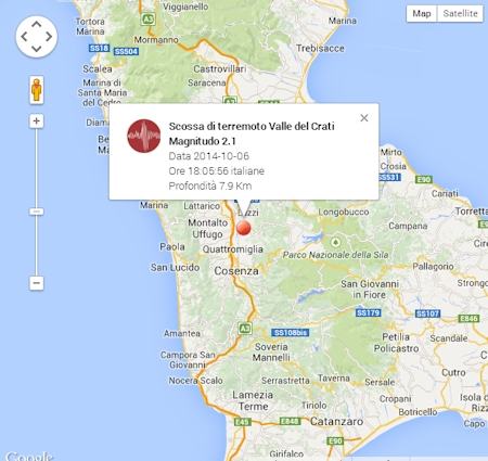 Una scossa di terremoto di 2.1 gradi della scala Richter è stata avvertita distintamente a Cosenza città e nell’hinterland poco dopo le ore 18.00, nonostante la magnitudo non sia stata elevata. Questo perché l’epicentro della scossa è stato localizzato proprio nella Valle del Crati (tra Cosenza e Luzzi) ad una profondità di 7.9 km come riportano i dati dell’Istituto nazionale di Geofiscia e Vulcanologia. Per ora non si segnala nessun danno a cose o persone.