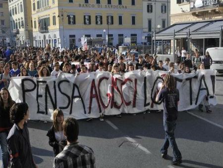 Nel corso della manifestazione, partita intorno alle 10 da piazza Loreto, sono state lanciate uova contro la sede del PD di viale Trieste. Un’azione che sottolliena l’obiettivo di contrastare le politiche del premier Renzi. I manifestanti stanno scioperando in contrasto con il Jobs Act che tenderà a rendere il mondo del lavoro in Italia sempre più precario e il Piano Educativo che consentirà alle aziende private di ‘gestire’ le scuole italiane. A finire nel mirino della protesta anche alcune banche prese d’assalto con altri lanci di uova. Circa 400 persone hanno partecipato attivamente alla mobilitazione portando l’attenzione anche sull’annosa questione dei trasporti in Calabria, dove, stranamente, si impongono prezzi astronomici ai pendolari, mentre le aziende private incassano milioni di euro di finanziamenti dalla Regione e dal Governo. Il corteo non ha seguito uno schema prefissato. I manifestanti hanno sfilato per le strade della città raggiungendo poi piazza Prefettura dove si è tenuta un’assemblea pobblica per denunciare le nefandezze del Governo Renzi. Nel corso della mattinata non si sono registrati momenti di tensione.
