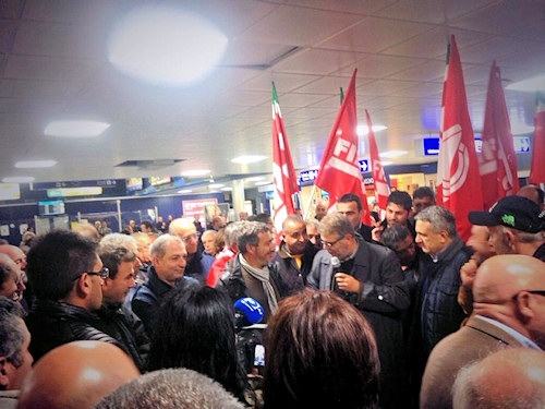 LAMEZIA TERME (CZ) – Diversi lavoratori precari Lsu-Lpu, cassintegrati e in mobilità in deroga ed ex dipendenti di società portuali, stanno manifestando in queste ore con presidi a Lamezia Terme all’interno dell’aeroporto Internazionale ed alla stazione di Goia Tauro (RC) dove circa 800 persone stanno protestando. L’azione di protesta è stata promossa dalla Cgil Calabria. Nonostante le cattive condizioni meteo che ha bloccato molti lavoratori, sono centinaia quelli che hanno raggiunto i due presidi: attualmente non si registrano disagi e la situazione viene tenuta sotto controllo da polizia e carabinieri. Uniche difficoltà proprio a Gioia Tauro, dove questa mattina verso le 11 i treni da e per Reggio Calabria sono rimasti bloccati perché alcuni manifestanti avevano invaso i binari lanciando fumogeni e bengala. Ma poco dopo il blocco è rientrato. A quanto pare, la disponibilità del sottosegretario Delrio a incontrare la mattina del 12 novembre a Roma una delegazione della Cgil per discutere delle vertenze della Piana di Gioia Tauro, non ha soddisfatto alcuni dei lavoratori che hanno contestato la decisione di interrompere la protesta. A supporto dei lavoratori una nutrita delegazione del PD e di rifondazione Comunista, si è unita alla protesta e si dice d’accordo con le proposte della CGIL. Insieme a sindacalisti e lavoratori, hanno partecipato alla manifestazione anche il sindaco di Polistena Michele Tripodi e Giovanni Piccolo, sindaco di Seminara. All’interno dell’aeroporto di Lamezia, invece, si e’ tenuta un’assemblea con i lavoratori presenti, poi una delegazione guidata dal segretario generale della Cgil Calabria Antonio Gravano ha raggiunto la prefettura di Catanzaro per illustrare al prefetto le richieste del sindacato.
