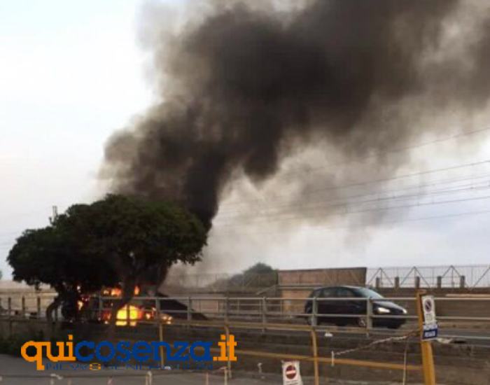 FOTONOTIZIA – Furgone in fiamme sulla statale 18 a Belvedere Marittimo