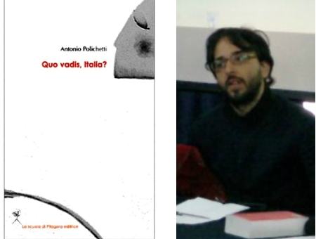Si intitola “Quo vadis, Italia? Rapporto sullo stato del Paese” il libro di Antonio Polichetti che il 14 novembre viene presentato anche a Cosenza, alle 16.30 presso l’Ordine degli Architetti di Cosenza, in via Lungo Crati De Seta. Edito dalla casa editrice “La Scuola di Pitagora”, la presentazione del volume è promossa dal VAS, Associazione Verdi Ambiente e Società onlus in collaborazione con il Club Unesco Cosenza “B. Telesio”. Un libro che nasce da un lavoro di riflessione, di ricerca e di sintesi avviato durante la lotta che le Assise della Città di Napoli e del Mezzogiorno d’Italia hanno combattuto, dalla fine del 2005, contro i criminali responsabili del disastro, dell’inquinamento e della condanna a morte della Campania ormai ribattezzata tristemente ‘Terra dei fuochi’ che negli ultimi anni è stata avvelenata irreversibilmente da un traffico di rifiuti tossici provenienti dalle industrie del Nord Italia.