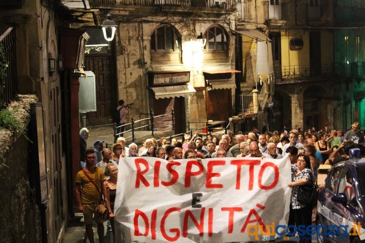 COSENZA – Il silenzio, una preghiera ed una scritta eloquente: “rispetto e dignità”. Alla fiaccolata promossa dal Comitato Piazza Piccola hanno preso parte decine di cosentini che hanno sfilato da piazza Valdesi per tutto il centro storico, arrivando poi il piazza XV Marzo. Una manifestazione per tenere alta l’attenzione su una tragedia che in molti ritengono, poteva essere evitata. Secondo i partecipanti infatti, la responsabilità di quanto accaduto è da attribuire alla ‘scellerata gestione della cosa pubblica’ degli ultimi trent’anni a Cosenza. Non hanno funzionato i servizi sanitari, sociali ma i cittadini, soprattutto quelli che vivono e amano il centro storico, non hanno intenzione di restare a guardare e chiedono interventi di welfare e prevenzione.