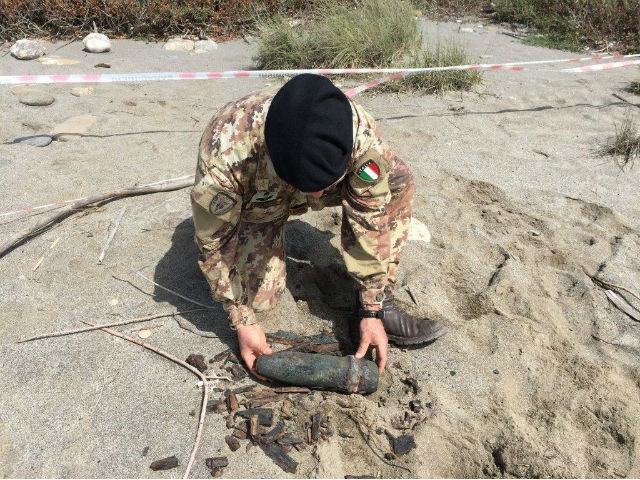 Alcuni cittadini che passeggiavano nei giorni scorsi sulla spiaggia di Palizzi hanno riconosciuto tra numerosi rifiuti un oggetto metallico che aveva una forma simile ad un ordigno. Allertati i Carabinieri della locale Stazione, gli stessi hanno subito confermato che l’oggetto sospetto era un residuato bellico inesploso, restituito dal mare in burrasca, dopo giorni di vento teso di scirocco. Un Nucleo degli Artificieri dell’Esercito, della Caserma “Manes” di Castrovillari è stato allertato per l‘intervento urgente, data l’immediata adiacenza della SS106 e della linea ferroviaria. Giunti sul posto da un accurato controllo nelle immediate vicinanze del primo rinvenimento, hanno localizzato un secondo oggetto sospetto, subito segnalato dalle Forze dell’Ordine. Ieri gli Artificieri del Genio Guastatori sono quindi intervenuti con il supporto sanitario dei Volontari di Palizzi portando a termine un’intervento apparentemente semplice ma con diverse variabili come il transito dei veicoli sulla statale e dei treni sulla linea ferrata, oltre al pessimo stato degli ordigni inesplosi. Il maresciallo Cipriano, ha riconosciuto in quegli oggetti arrugginiti, due granate d’artiglieria italiane, una da 75mm e una da 100mm, contenenti in totale circa 2 chili di alto esplosivo e coadiuvato dall’operatore Sergente Maggiore Aversa, hanno provveduto ad effettuare una protezione di sacchetti di sabbia e a far brillare i residuati a breve distanza sulla spiaggia. Le munizioni, innescate dagli Artificieri, sono esplose, ricordando ai presenti, quale potenziale pericolo era sotto i piedi di tutti e che, nonostante la furia del mare e lo scorrere inesorabile del tempo, questi strumenti di morte, rimangono sempre attivi e pericolosi.
