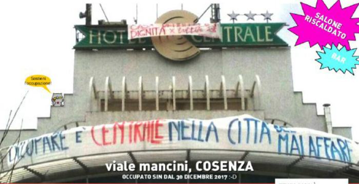 COSENZA – “Quello che, fino al 30 dicembre scorso, rappresentava un freddo ammasso di cemento, vuoto, fatiscente e al centro di interessi speculativi di banche e vecchi e nuovi palazzinari, – si legge in una nota del Comitato PrendoCasa – ora dopo ora, grazie all’incessante ed entusiasta lavoro di decine di famiglie, italiane e migranti, sta assumendo le fattezze di uno scheletro che prende improvvisamente vita, di uno scheletro che, quasi come per magia, riacquista la sua pelle, bianca, nera, marrone o gialla che sia. Intendiamo subito rivolgersi alla città, aprendo a tutti ciò che l’abbandono, figlio della speculazione fallita, ha lasciato tristemente chiuso per anni. Pertanto, a partire da venerdì 5 e fino a domenica 7 gennaio, il Centrale Occupato, su viale Giacomo Mancini, si trasforma in un grande salone dei giochi, degli incontri, delle feste. Ogni pomeriggio, alle ore 16, il CinemaBimbi per gli occupanti più piccoli e per tutti i bambini che vorranno raggiungerci.
