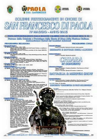 PAOLA (CS) – Tutto pronto per i festeggiamenti religiosi e civili in onore di San Francesco di Paola.