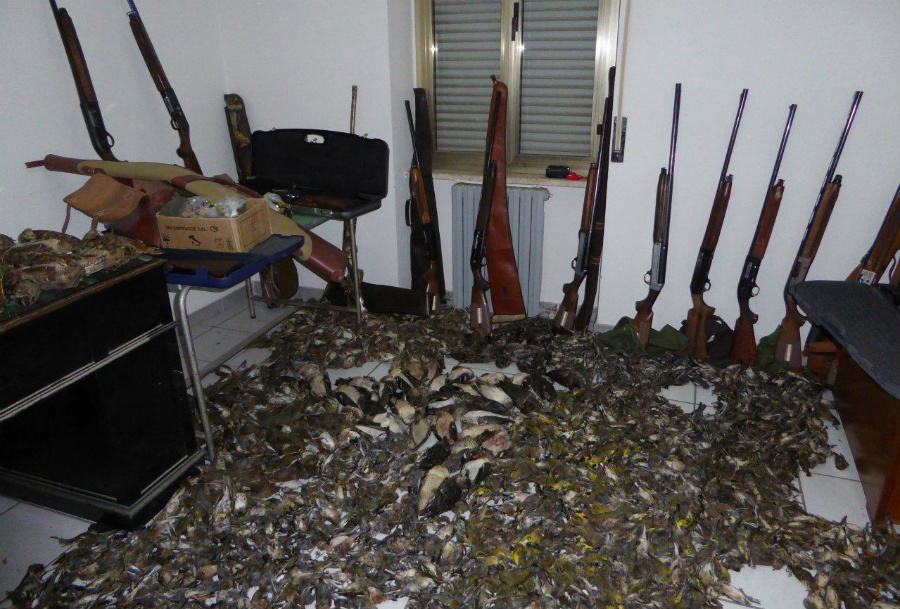 Gli ulteriori e dettagliati controlli hanno accertato la presenza nei quattro scatoloni di 2.795 capi di avifauna per la maggior parte non cacciabile appartenenti alla specie di “Fringilidi” (fringuelli, verdoni, cardellini, fanelli, verzellini, zigoli e peppole oltre a beccacce, beccaccini, alzavole, storni, allodole, pettirossi, capinere, merli, ghiandaie, cinciallegre minori e cinciallegre maggiori) ,suddivisi in pacchetti più piccoli e selezionati per specie, altri 330 capi sono stati rinvenuti all’interno di un magazzino di uno degli indagati insieme ad altro munizionamento incustodito oltre a 28 fucili di vario calibro che erano le armi messe a disposizione per i cacciatori che arrivavano dal nord Italia.