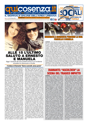 Archivio Storico News Qui Cosenza Primo Piano Anno 1 nr. 35 Pubblicato 13 anni fa il 25 Marzo, 2013 Di Redazione Argomenti correlati: Prossimo Anche il cielo “piange” Ernesto e Manuela Non perdere Bergamini, si aggrava la posizione della ex Redazione Pubblicità Pubblicità . CategorieArea Urbana22978Calabria37863Ionio3833Italia8098Provincia20073Tirreno3017 Ultimi Di tendenza Video Calabria3 minuti fa Giovane picchiato, trascinato in una struttura e poi rapinato. Arrestato il secondo complice Area Urbana22 minuti fa Cosenza protagonista al Senato: presentata la ‘Carta’ sulla libertà religiosa Ionio34 minuti fa Statale 106 in Calabria, la nuova Jonica prende forma: avanzano i lavori del Terzo Megalotto Area Urbana41 minuti fa La Polizia passa al setaccio Cosenza e provincia, raffica di denunce e sequestri Area Urbana1 ora fa “Basta bugie su Guglielmo”: parla la sorella del 40enne morto in clinica a Cosenza Sport1 ora fa Cosenza Calcio, possibile revisione della concessione all’utilizzo dello stadio “Marulla” Area Urbana4 settimane fa Straordinario intervento endovascolare all’Annunziata, salvato un 20enne. La mamma «è vivo grazie a loro» Area Urbana4 settimane fa Inquinamento a Rende: come sono “scomparsi” i laghi della Legnochimica – VIDEO Area Urbana1 settimana fa Giovane influencer di Cosenza guadagna oltre 200mila euro in due anni, ma non li dichiara al Fisco Italia3 settimane fa Sicurezza stradale, esposto delle associazioni Vittime della Strada: «segnalateci i pericoli, interverremo subito» Provincia2 settimane fa Allerta arancione in Calabria. Scuole chiuse a Cosenza Rende, Montalto e altri comuni del Cosentino – ELENCO Cronaca3 settimane fa Grave incidente ad Amendolara, auto precipita in un dirupo: tre feriti gravi Calabria9 ore fa Incendio in un capannone agricolo: morti alcuni animali, due persone lievemente ustionate Area Urbana10 ore fa Cosenza, Paolini: “Italia–Irlanda U18, il rugby che unisce due popoli” Calabria1 giorno fa Corruzione, appalti e gestione illecita di fondi pubblici. Indagate 15 persone, anche il sindaco di Cotronei Calabria1 giorno fa Record di reati in una sola notte, 27 tra furti e incendi: arrestato un diciassettenne Calabria1 giorno fa Elisabetta Gregoraci sul caso del padre Mario: “Rosita Gentile, mai offesa né emarginata” Area Urbana2 giorni fa Cosenza: proclamati i 14 consiglieri regionali della Circoscrizione Nord Social 96,425 MI PIACE 2,087 SEGUICI 2,816 SEGUICI 2,831 SEGUICI 2,910 ISCRIVITI