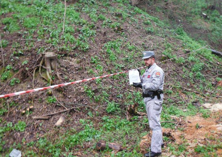 Sequestrata l’area di 5000 metri quadri e denunciato il titolare di una ditta boschiva e il responsabile comunale del settore lavori pubblici