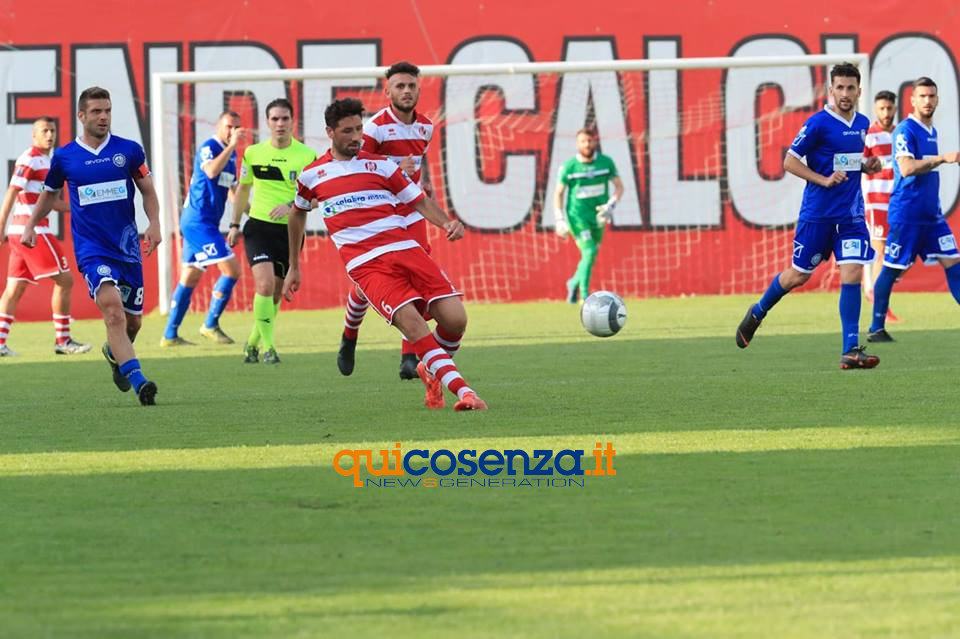 RENDE – Dopo la rocambolesca e storica vittoria al “San Vito- Marulla” contro il Cosenza, nell’ultima gara di campionato disputata al Lorenzon, il Rende dei miracoli pareggia per 1 a 1. Ma poco importa se ancora una volta in casa il successo non è arrivato, stasera si festeggia ugualmente visto che per i biancorossi questo pareggio significa accesso matematico ai play-off. Partita che per tutta la prima frazione di gioco si gioca su ritmi blandi, con il Rende che prova a cercare la giocata vincente, senza peraltro riuscirci, mentre gli ospiti si limitano a controllare senza rendersi praticamente mai pericolosi. Venti minuti di noia assoluta dove l’unica nota da segnalare sono gli applausi a vicenda tra i tifosi pugliesi e i quelli biancorossi. Poco prima della mezz’ora un sussulto dei padroni di casa con Vivacqua che prova senza successo una sforbiciata, con la sfera che si accomoda dolcemente tra le braccia di Cilli. In pratica l’unica azione degna di nota di tutto il primo tempo.