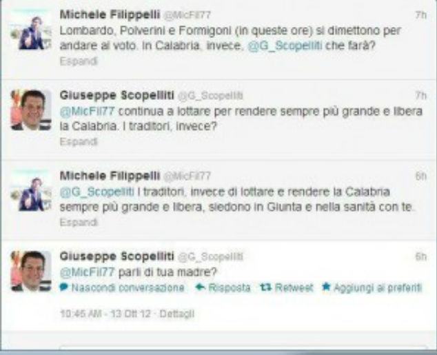 Filippelli-Scopelliti: “tweet” di fuoco