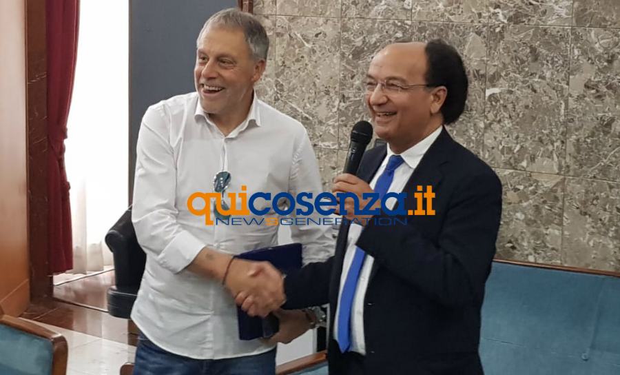 COSENZA – Era la notizia che tutti aspettavano a Cosenza ed il presidente rossoblu Eugenio Guarascio, dopo averla annunciata ieri in televisione, l’ha confermata ufficialmente stamattina a Palazzo dei Bruzi davanti al sindaco, lo staff tecnico, dirigenti e alla squadra. Dopo un primo incontro di ieri ha rivisto il tecnico questa mattina e l’accordo si è subito trovato. Il presidente ha così dato l’annuncio “volevo comunicarvi che dopo aver visto ieri l’allenatore Braglia ed esserci rivisti questa mattina, abbiamo trovato l’accordo economico. Per questo sono felice di comunicarvi che anche per il prossimo anno il tecnico Piero Braglia sarà alla guida del Cosenza“. La notizia, attesa da tutti, è arrivata proprio a conclusione dell’incontro promosso dal Comune che ha ospitato e premiato lo staff, i calciatori, il presidente del Cosenza ed appunto il tecnico toscano Braglia che emozionato ha subito commentato “non me l’aspettavo e mi fa enormemente piacere. Spero di non tradire la fiducia di nessuno e di fare un grande campionato che sarà quello importante per l’assestamento della società del Cosenza Calcio in Serie B“.