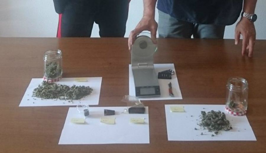 I militari hanno poi proceduto alla perquisizione che ha dato subito esito positivo: all’interno di un mobile della cucina fra i vari barattoli contenenti alimenti, ne sono stati trovati due in vetro pieni di marijuana, per un peso complessivo di circa 35 grammi. In un altro contenitore di plastica c’erano 33 grammi di hashish in tavolette spezzate. Infine in vari cassetti sono stati trovati soldi, denaro contante per circa 3mila euro, in banconote di vario taglio, ritenuto provento dell’attività di spaccio delle sostanze stupefacenti.