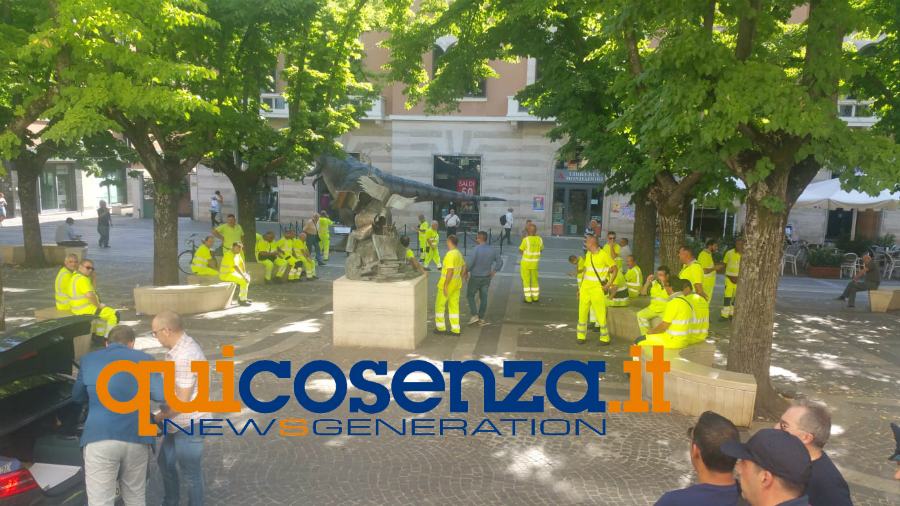 Assemblea davanti alla prefettura di Cosenza. In ritardo lo stipendio di giugno e quattordicesima per la solita diatriba tra il Comune di Cosenza ed Ecologia Oggi. Questa volta i dipendenti si fermano per difendere un diritto e la dignità di lavoratori
