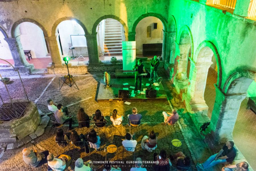 Agli esponenti di: Primavera dei teatri, Oscenica, Laterale film festival, Joggi avanti folk, Cleto festival e Altomonte rock festival presenti all’incontro, il Festival Euromediterraneo di Altomonte ha messo a disposizione la propria esperienza per produzioni comuni che lascino traccia sul territorio calabrese, prima di essere apprezzate in altri luoghi. Tante contaminazioni culturali con gli incontri letterari che hanno visto protagonisti: Esperia Piluso, Tommaso Orsimarsi, Luigi Sirimarco, Davide Imbrogno, Mimmo Talia, Alfredo Sprovieri, Oscar Greco, Lou Palanca, Michele D’Ignazio, Emanuele Carnevale, Mario Vicino e Eliana Iorfida in conversazioni fra autori in cui protagonisti sono stati la scrittura, l’arte, Altomonte, il viaggio, i social, la follia, la Calabria, la storia, la Siria, il Brasile, la guerra, la pace cercata e l’Io. E poi tanta poesia con gli autori riunitisi, appositamente per l’occasione, nel Chiostro di San Domenico e che il prossimo anno torneranno come un vero e proprio collettivo poetico: Orietta Scarpelli, Antonio Termine, Rosanna Angiulli, Esperia Piluso, Giovanni Cristofaro, Franceschina Antonucci, Concetta Salituro, Tiziana Perrone e Damiano Salerno.