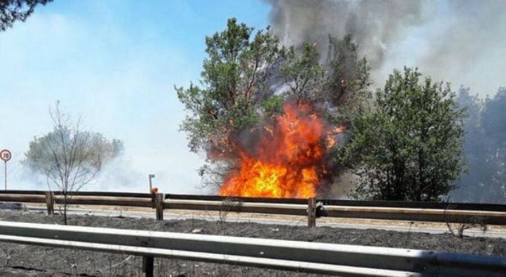 MONTEGIORDANO (CS) – Incendio in provincia di Cosenza nel Comune di Montegiordano. Il fuoco lambisce la carreggiata della statale jonica rendendone necessaria la chiusura al traffico a causa dei fumi. Ad intervenire per spegnere le fiamme nei pressi della ss 106 Variante di Montegiordano i Vigili del Fuoco supportati da personale di Calabria Verde e da mezzi aerei coordinati dal Direttore Operazioni Spegnimento. Sul posto anche gli operatori Anas per la gestione della viabilità provvisoriamente deviata sulla vecchia sede della statale 106 e per il ripristino della normale circolazione nel più breve tempo possibile. Per le abitazioni sparse nella zona coinvolta dal rogo al momento non sussiste alcun pericolo. Difficile per le squadre di terra raggiungere l’area impervia in cui si è sviluppato l’incendio.