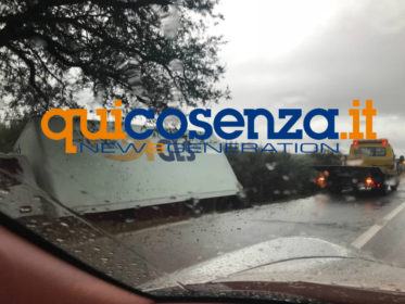 Il conducente non ha riportato ferite. Disagi alla viabilità e forti rallentamenti per il maltempo. Sul posto operatori Anas per regolare il traffico