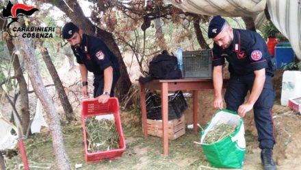 Sempre il 17 settembre scorso i militari dell’Arma rinvenirono nei terreni di proprietà del 54enne in località Regina del comune di Lattarico una vera e propria piantagione di circa 1 ettaro, completa di impianto di illuminazione, di irrigazione e foto-trappole in cui erano state coltivate 1.137 piante di canapa, in fase di infiorescenza, dell’altezza media di circa 50 centimetri e ulteriori 5 chili di residui di fogliame e fiori. Sul posto è stata rinvenuta anche una tenda da campo con dentro tavoli, sedie, attrezzi da lavoro, un bilancino e materiale per il confezionamento, tutto sottoposto a sequestro.