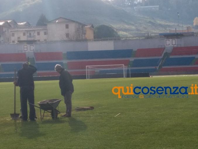 Questa mattina la commissione Sport del Comune di Cosenza ha effettuato un sopralluogo per prendere atto dello stato dell’arte ed esprimere gratitudine all’imprenditore che ha scelto di prendersi carico di questa costosa ristrutturazione. “Siamo qui oggi – dichiara il presidente della commissione Gaetano Cairo – per capire come saranno eseguiti i lavori, quali saranno le tempistiche e dare il sostegno morale a questo progetto che l’amministrazione comunale di Cosenza ha pienamente sposato”. “La passione che mi lega al Cosenza Calcio – afferma il consigliere comunale Giovanni Cipparrone – mi ha portato qui. Faccio parte del club Via Popilia C’è che ha sede proprio davanti l’Hobby Color dove lo splendore del murales con la storia di Cosenza ci ha colpito così tanto da coinvolgere Federico Morabito per il restauro del ritratto.