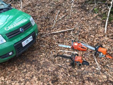 I carabinieri forestali hanno sorpreso tre uomini in località Cinquevie, due armati di motoseghe mentre depezzavano gli alberi ed il terzo complice vicino al camion intento a caricare la legna