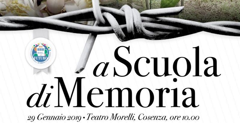 COSENZA – “A scuola di memoria”, in programma alle ore 10,00 al Teatro “Morelli”, per iniziativa della scuola media “Zumbini”, sostenuta dalla Rete Universitaria per il Giorno della Memoria, in collaborazione con Comune di Cosenza, Comune di Tarsia e con il patrocinio della Camera dei Deputati, dell’Unione delle Comunità Ebraiche Italiane e di Napoli Ebraica.