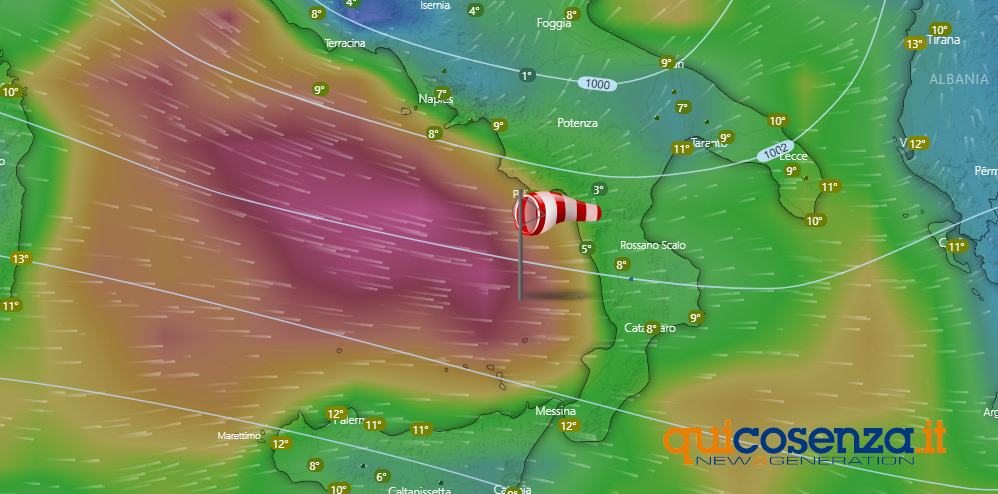 COSENZA – Una nuova perturbazioni di origine nord-atlantica, alimentata da aria fredda di origine artica, in queste ultime ore ha formato un minimo di bassa pressione sul golfo ligure apportando un nuovo deciso peggioramento delle condizioni meteo su buona parte dell’Italia alle prese da questa mattina con piogge e nevicate che si sono spinte fino in pianura al nord Italia. La bassa pressione in queste ore sta muovendo velocemente verso sud/est. Un deciso peggioramento sta interessando anche i versanti tirrenici della Calabria dove è arrivata anche aria più fredda e soffiano forti venti di maestrale in deciso rinforzo nella notte dove sono attese lungo le coste raffiche intense che potrebbero sfiorare anche i 50 Km/h. Il mar Tirreno risulterà ovunque tempestoso.