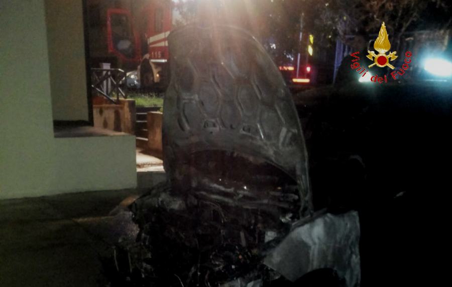 Fortunatamente non sono stati registrati danni alle persone e l’intervento dei Vigili del Fuoco è valso all’estinzione del rogo che ha coinvolto la vettura nella parte anteriore andata completamente distrutta. Al termine delle operazioni di spegnimento, da verifiche effettuate dal personale vigilfuoco, si rinvenivano elementi utili che escludono le cause accidentali.