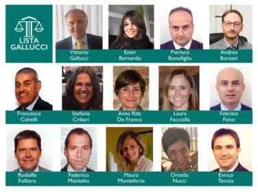 Gallucci Vittorio Presidente uscente; Bernardo Ester, Bonofiglio Pierluca, Borsani Andrea, Calvelli Francesco, Cribari Stefania, De Franco Anna Rita, Facciolla Laura, Falvo Fabrizio, Folliero Rodolfo, Montalto Federico, Monteforte Maura, Nucci Ornella, Tenuta Enrico