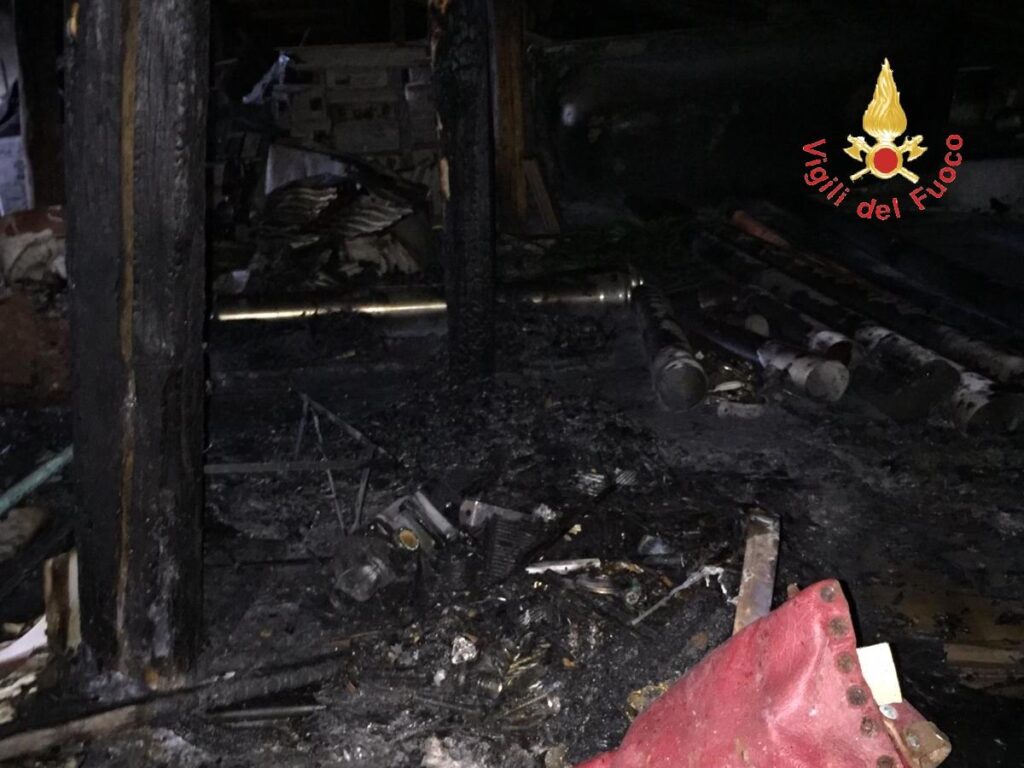 Distrutto il materiale all’interno ma il tempestivo intervento delle unità dei vigili del fuoco ha evitato il propagarsi delle fiamme alla struttura e agli appartamenti sottostanti.