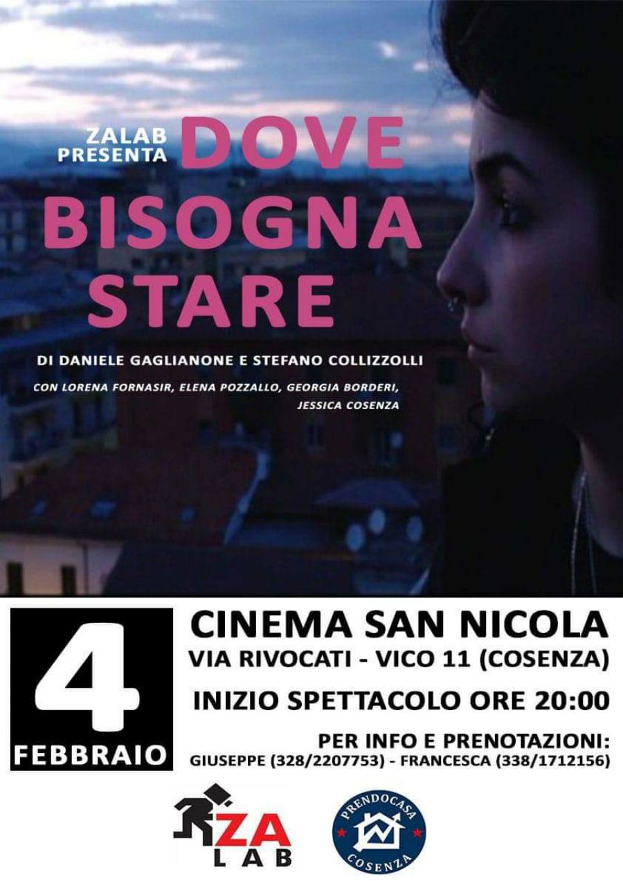 Il 2 dicembre è stato presentato al Torino Film Festival; il film “Dove bisogna stare”. Le protagoniste sono quattro donne con le rispettive esperienze di vita e tra queste una giovane cosentina