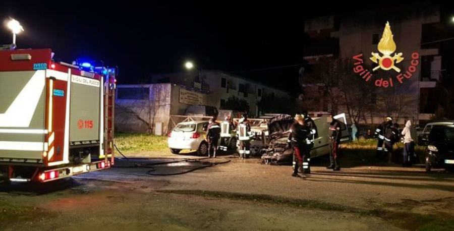 Il primo caso è stato registrato all’1,20, quando le squadre dei vigili del fuoco del Comando di Catanzaro sede Centrale e distaccamento di Sellia Marina sono intervenute in via Stretto Antico, nella zona sud di Catanzaro, per incendio di autovetture. Interessata dal rogo una Fiat 500, completamente distrutta, parcheggiata in un cortile tra le palazzine popolari in prossimità di una carrozzeria. Le fiamme hanno danneggiato anche due vetture parcheggiate nelle vicinanze. L’ipotesi più accreditata per gli incendi è quella dolosa, anche perché sono stati riscontrati nella zona altri atti vandalici su diverse autovetture. Le fiamme, si sono propagate ad un autofurgone Opel parcheggiato nelle vicinanze che riportava ingenti danni sulla fiancata lato passeggero e nella parte anteriore. Il forte calore sprigionato dall’incendio danneggiava inoltre una terza autovettura, una Toyota che riportava danni sulla fiancata lato passeggero e fanale anteriore.