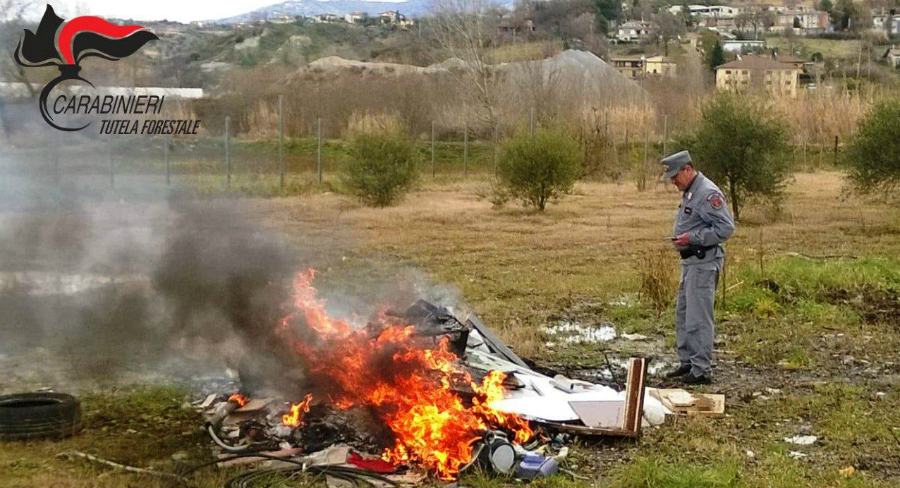 La combustione del materiale, oltre a diffondere nell’atmosfera un fumo denso emanava un acre e pungente odore tipico della combustione di materiale plastico. Su un’area verde, si stavano bruciando rifiuti speciali quali imballaggi in plastica; pannelli in legno truciolare rivestiti in laminati plastici e assemblati mediante colle e resine sintetiche, rifiuti RAEE quali un aspirapolvere, lampade, oltre a pneumatici, tubature in plastica per cablaggi elettrici e tubature per scarichi domestici.