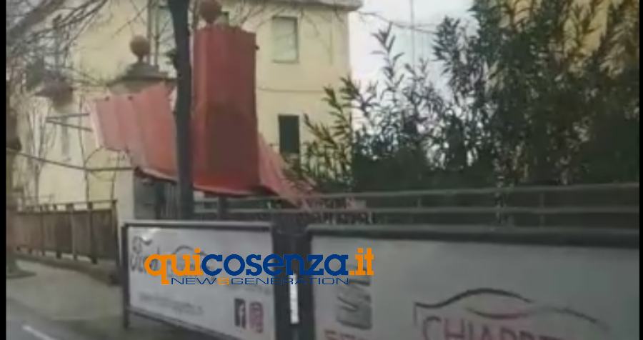 Vento a Paola, tettoia si schianta al suolo. Panico tra i passanti