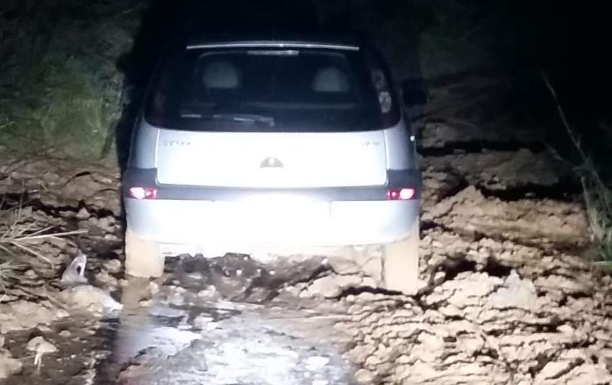 Uomo e anziana donna bloccati con l’automobile in una strada comunale trasformata in un fiume di fango: “Su quella mulattiera ad ogni chilometro si rischia la vita”