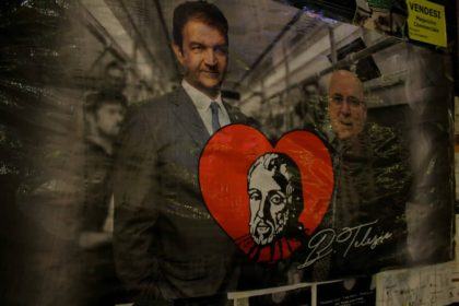 Nuovo blitz in strada del ‘fantasma’ del noto filosofo cosentino che definisce il sindaco di Cosenza e il governatore della Regione Calabria: “Ingordi principi, fintamente litigiosi, nascostamente amanti”