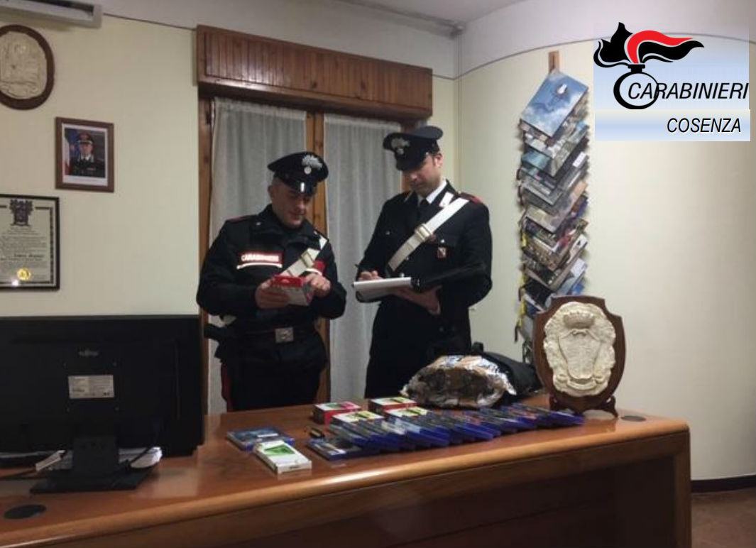 Le pattuglie mobilitate hanno quindi trovato seduta nella sala d’attesa della stazione di Praia a Mare la terza complice con la borsa di colore nero contenente la refurtiva. I fermati sono stati accompagnati presso la caserma dei Carabinieri di Scalea per essere sottoposti ad un controllo più accurato. A seguito di perquisizione personale e veicolare sono stati rinvenuti, all’interno della borsa, 15 videogames, 5 joypad ed un cavetto per ricarica cellulare, del valore complessivo di 1.700 euro, mentre all’interno dell’autovettura in uso ai malfattori sono stati ritrovati alcuni strumenti da effrazione. La condotta delittuosa ricostruita dai Carabinieri ha trovato ulteriore conferma nelle registrazioni del sistema di videosorveglianza installato all’interno dell’esercizio commerciale, immagini che hanno immortalato i tre campani mentre consumavano il furto.