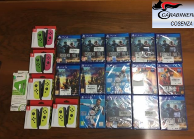 Le pattuglie mobilitate hanno quindi trovato seduta nella sala d’attesa della stazione di Praia a Mare la terza complice con la borsa di colore nero contenente la refurtiva. I fermati sono stati accompagnati presso la caserma dei Carabinieri di Scalea per essere sottoposti ad un controllo più accurato. A seguito di perquisizione personale e veicolare sono stati rinvenuti, all’interno della borsa, 15 videogames, 5 joypad ed un cavetto per ricarica cellulare, del valore complessivo di 1.700 euro, mentre all’interno dell’autovettura in uso ai malfattori sono stati ritrovati alcuni strumenti da effrazione. La condotta delittuosa ricostruita dai Carabinieri ha trovato ulteriore conferma nelle registrazioni del sistema di videosorveglianza installato all’interno dell’esercizio commerciale, immagini che hanno immortalato i tre campani mentre consumavano il furto.